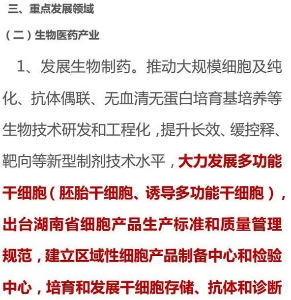 重磅!湖南发文明确支持干细胞产业发展,将建立区域性细胞产品制备中心。
